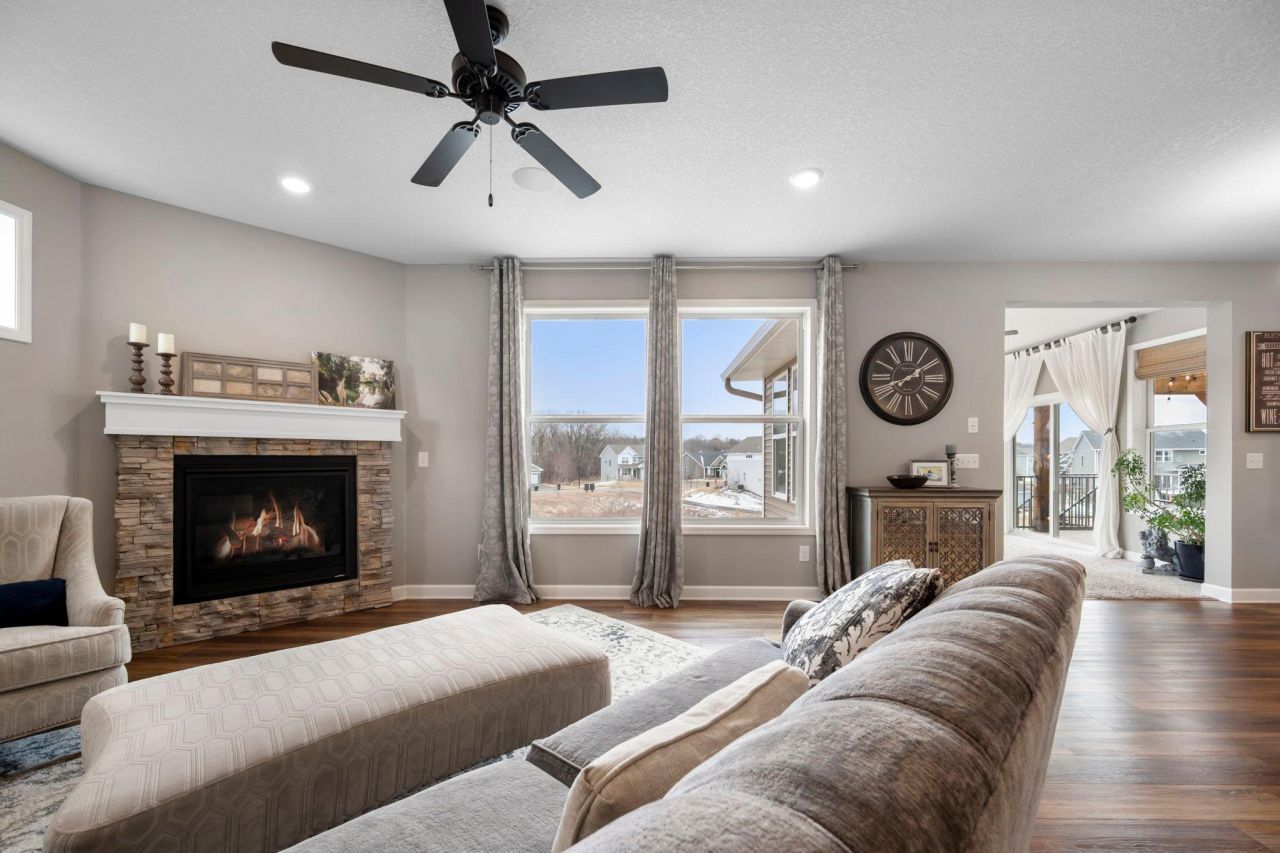 Welcome to this stunning 5-bedroom, 5-bath, two-story home perfectly situated on the edge of Otsego and Rogers. From the moment you step inside, the thoughtful design & beautiful finishes make a lasting impression. The main level features a dedicated office with French doors, a gorgeous four-season porch overlooking the backyard, & access to a maintenance-free deck & pergola. The living room centers around a gas fireplace with a striking stone surround, creating a warm & welcoming space. The kitchen is a true standout with an oversized center island, double ovens, & abundant counter space. Upstairs, the primary suite offers a tray ceiling, large windows with backyard views, two walk-in closets, & a luxurious tile shower. Two additional bedrooms with walk-in closets share a Jack-and-Jill full bath, while a fourth bedroom en suite contains its own private bath and walk-in closet. The upper-level laundry room adds personality with its striking blue tile wall. The walkout lower level provides a generous family room with access to the patio and beautifully landscaped yard featuring a stone fire pit & retaining wall. A fifth bedroom with walk-in closet, a bathroom, plus an oversized storage room to keep everything organized, finish the space. This home is truly exceptional & has already been pre-inspected. Schedule your showing today!