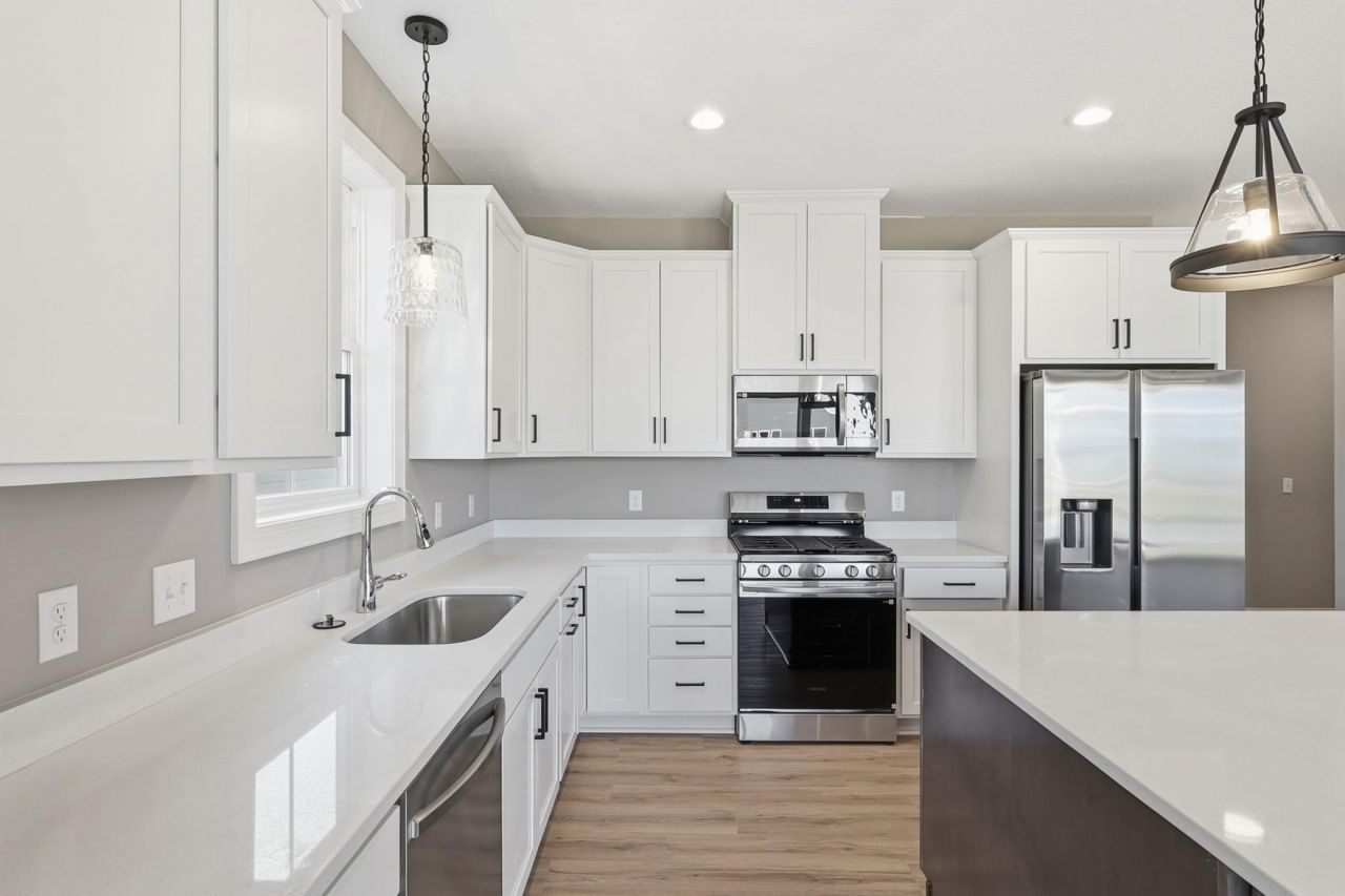Welcome to the Sonoma model, a craftsman-style home that blends architectural beauty with effortless main-level living. This thoughtfully designed floor plan offers 3 bedrooms and 2 bathrooms on the main level, along with all living facilities conveniently located on one floor. The open layout makes exceptional use of square footage filled with natural light from large windows and enhanced by high-end design finishes throughout. The lower level expands the living space with an additional bedroom, bathroom, private office, and a second living area, plus ample storage for everything you need. An oversized two-stall garage provides extra room for storage, while the HOA handles lawn care and snow removal for truly low-maintenance living. Architecturally stunning, thoughtfully planned, and beautifully finished, this Sonoma model offers comfort, elegance, and convenience in one exceptional package. Ideally located with quick access to both 35 and cedar. This main-level living home delivers both style and functionality.