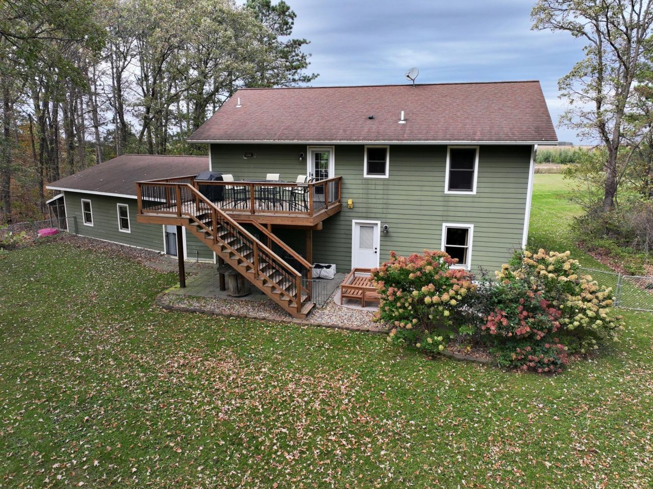 Country living on 2.25 acres just outside Park Rapids. This 3-bedroom, 2-bath home offers a great mix of open yard and mature trees, creating a private setting with plenty of space for kids, pets, and outdoor activities. The backyard is fully fenced and the property includes an in-ground sprinkler system. The upper level features the main living space with kitchen, center island, dining area, living room, primary bedroom, full bath, and access to the deck overlooking the yard. The lower level includes a large family room, two additional bedrooms, a ¾ bath, and laundry area. Comfort features include in-floor heat throughout the main level and into the attached finished double garage, along with a Steffes forced-air system and central air. The garage also includes a kitchen area and offers great space for entertaining, projects, or a hangout area. Located just minutes from the Duck Lake public access and many recreational trails, this property is a great combination of space, privacy, quality and location.