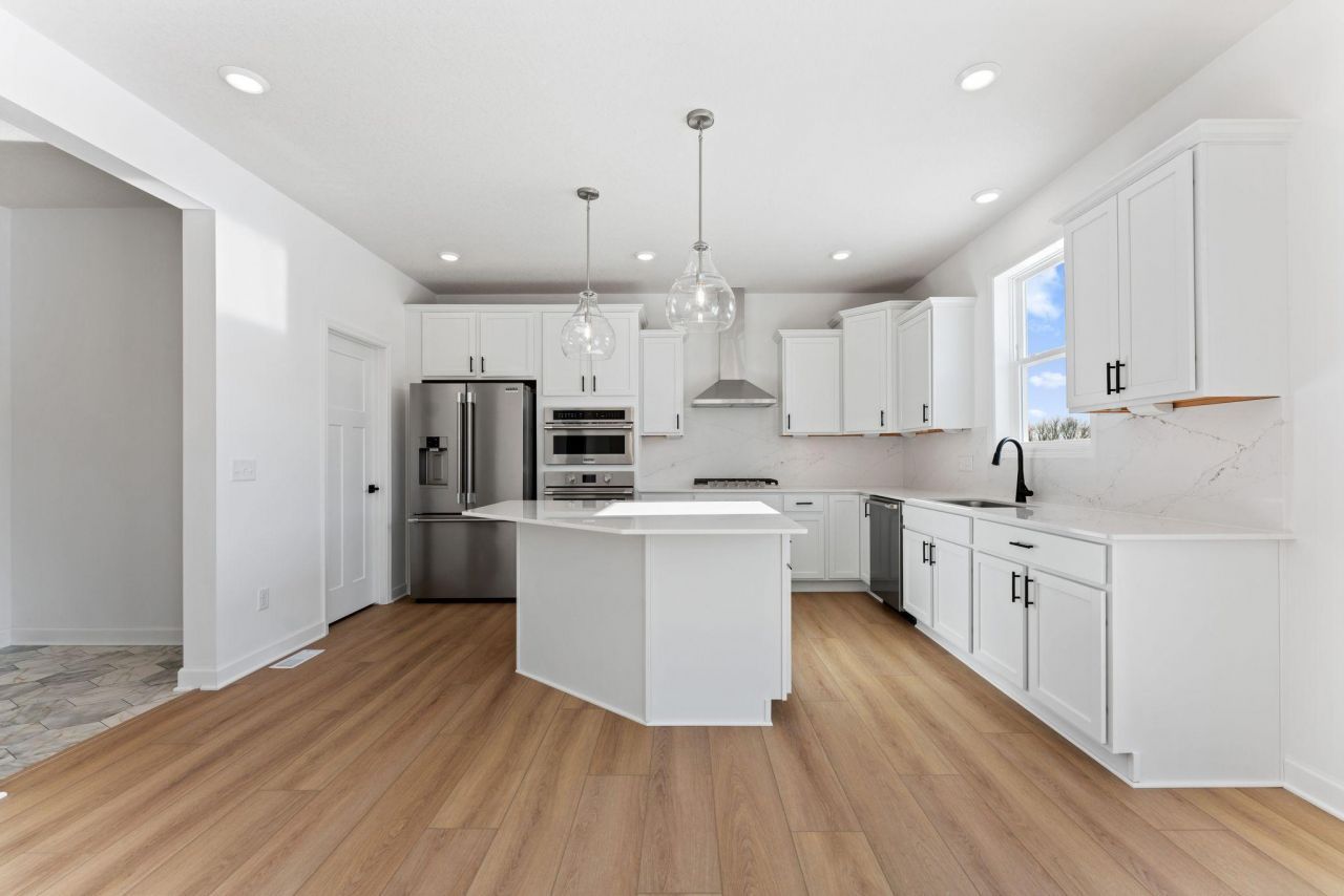 FINAL OPPORTUNITIES! Move-In Ready! Step inside this impressive 2,480 square foot home and discover a thoughtfully designed layout perfect for modern living. The main level welcomes you with a spacious Great Room, a chef-inspired gourmet kitchen featuring sleek quartz countertops, stainless steel Frigidaire® Gallery appliances and a stylish tile backsplash, plus a versatile office and a convenient mudroom with a walk-in closet. Upstairs, every bedroom offers its own walk-in closet, including the luxurious owner's suite with a glass-enclosed shower, extended-height vanity and premium finishes. Enjoy the convenience of an upstairs laundry room and energy-efficient touches throughout, like Low-E dual pane windows and a 92% efficient furnace. The fully finished 3-car garage?with insulated doors, garage door opener and coach lights?adds even more value. With so many sought-after features and a family-friendly floorplan, this home is sure to attract attention?don't miss your chance to make it yours!