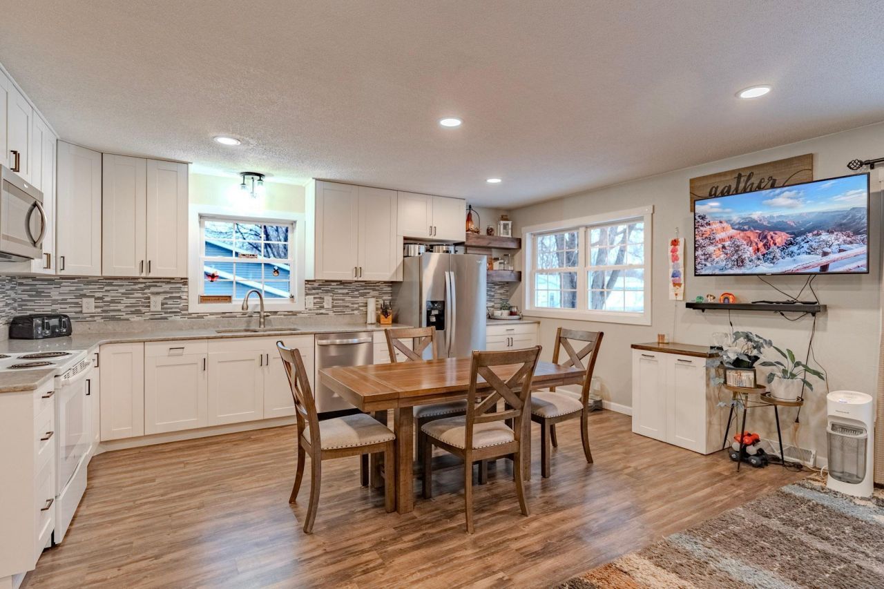 Remodeled and move in ready featuring modern open floor plan kitchen, dining room and living room upstairs with newer cabinets, countertops and appliances plus most flooring throughout! Totally remodeled bathrooms with granite & quartzite countertops, custom walk in tiled shower, oversized 3rd bedroom in basement with office area and many extras such as bonus storage shed in private fenced backyard, extra storage shelving in the partially insulated oversized 2 car attached garage, new gutters and water heater & more!! Great use of space and storage throughout! Enjoy the firepit and patio in the backyard, convenient location and corner lot for some elbow room ... all priced to sell!