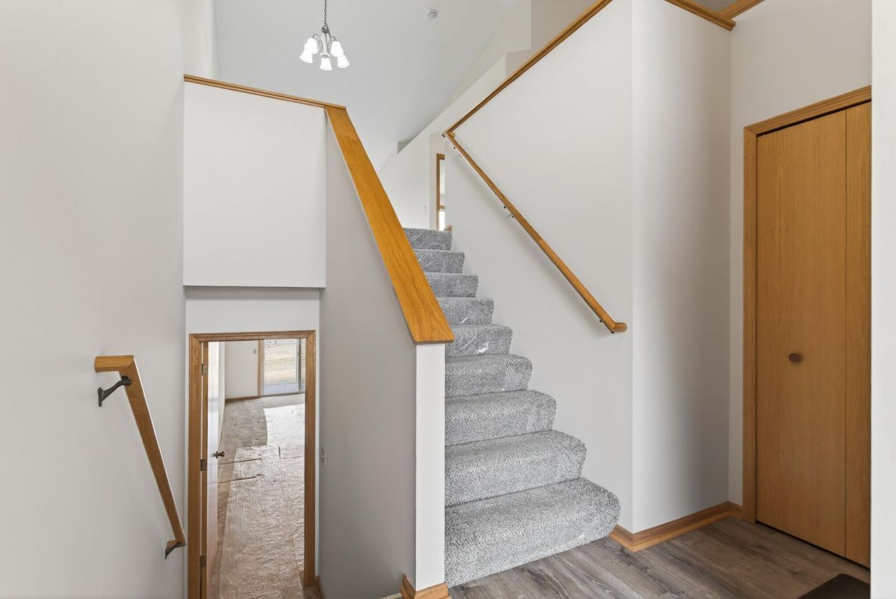 Move-in ready 2-bedroom , 2 full bathroom home nestled in a quiet part of the Autumn Ridge neighborhood in Monticello. This well-maintained home features brand new carpet on the upper level, brand new LVP flooring, fresh interior paint, and modern knockdown ceilings. The vaulted ceiling creates an open, airy feel, while the deck and walk-out patio provide great spaces for relaxing or entertaining. The primary bedroom includes a spacious walk-in closet for added convenience. Located near parks. schools, and commuter routes-this home offers comfort, style, and functionality all in one!