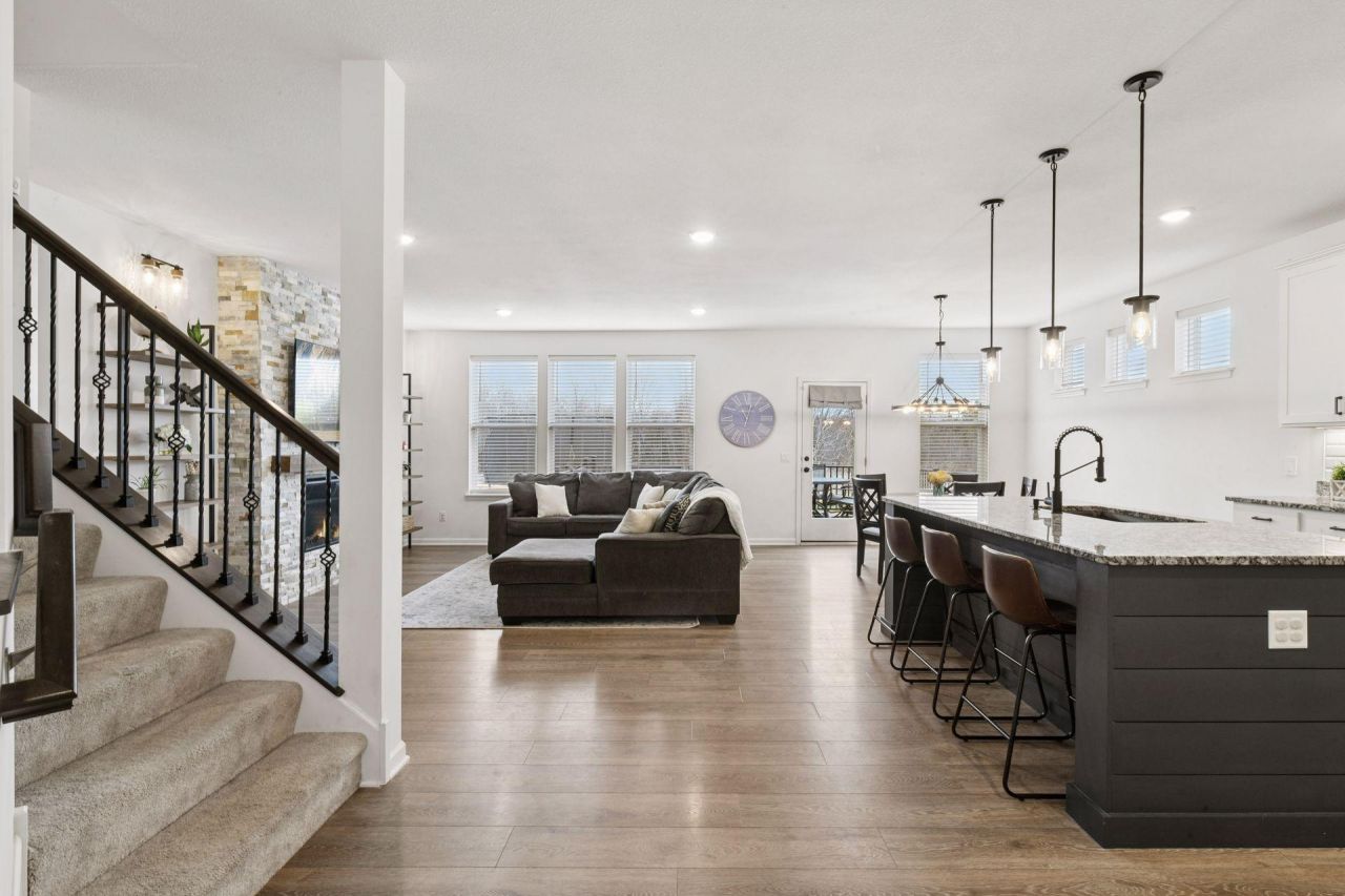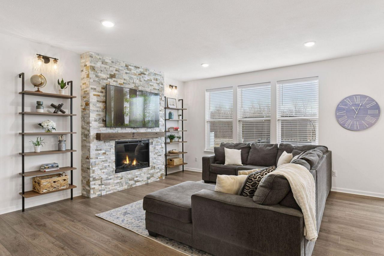 Built in 2023 and thoughtfully improved by its original owner, this Victoria home at 4732 Obsidian Way offers the feel of new construction with upgrades already in place. The main level features a flexible layout with a formal dining room and a separate office or playroom, along with a beautifully designed open concept kitchen and living area complete with a large center island, gas cooktop, vent hood, double ovens, and a stone fireplace anchoring the main living space.Upstairs, you will find four bedrooms including a spacious primary suite, plus a versatile loft area perfect for a second living space, homework zone, or media room.The unfinished lower level offers 9 foot ceilings and a rough in for a future wet bar, providing the ideal opportunity for a future finished basement and additional living space while building equity.Outside, enjoy a maintenance free deck overlooking a private wooded backyard, creating one of the most desirable lots in the neighborhood. Additional improvements including gutters have already been completed, allowing the next owner to simply move in and enjoy.